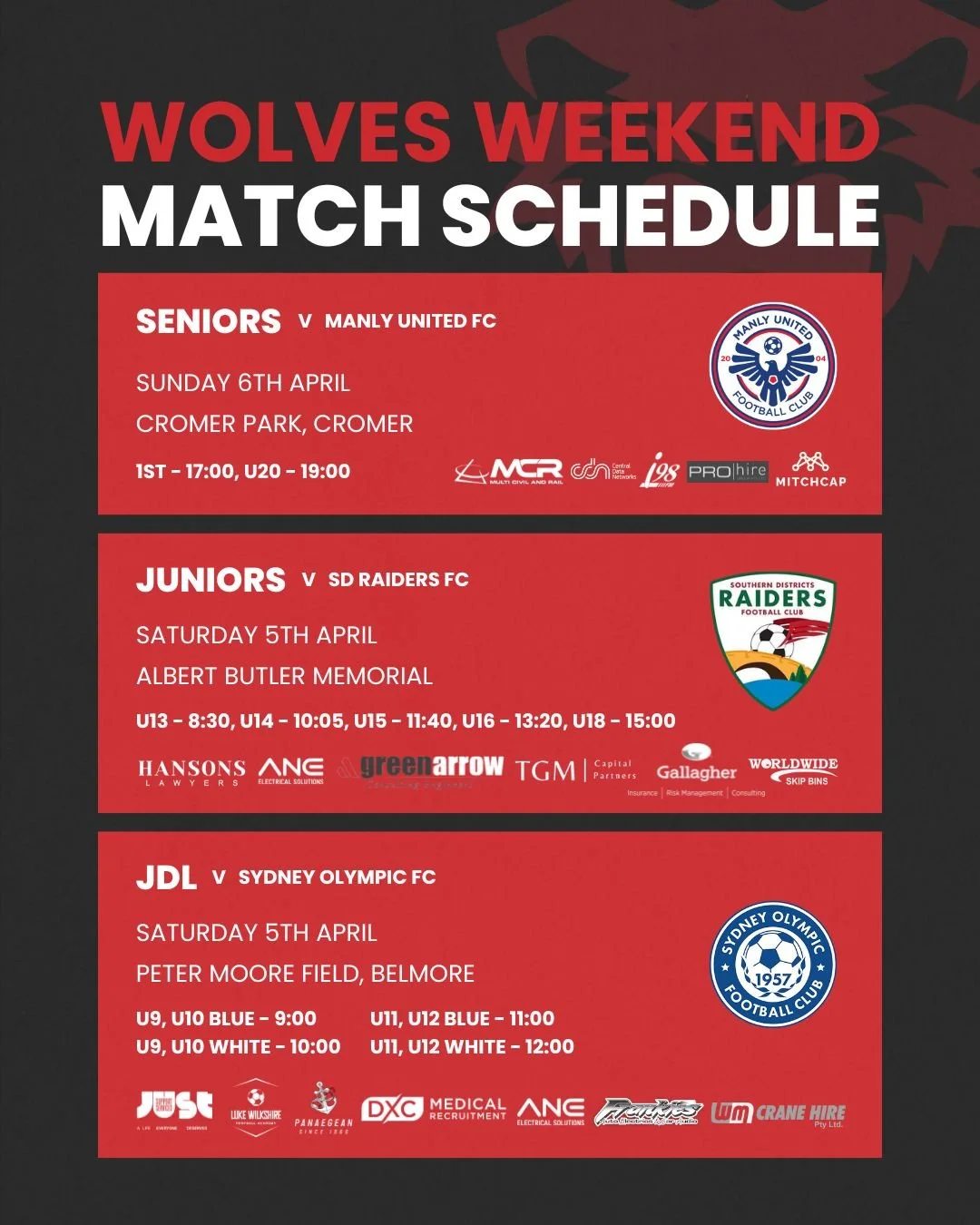 Utilising the Wollongong Wolves Football Club’s brand guidelines, these templates were developed to be updated as required.